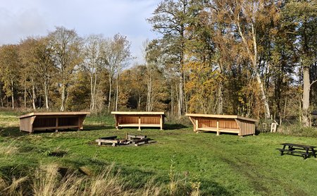 Vi er glade for at kunne tilbyde tre nye shelters, der hver har plads til 8 personer. De er placeret i naturskønne omgivelser, perfekte til en overnatning i det fri.