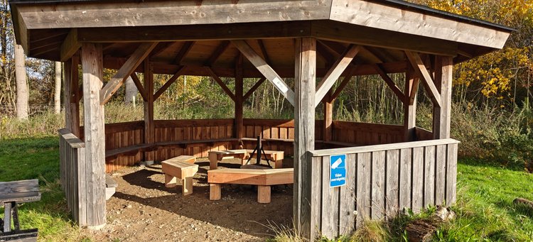 Bålhytte: Ved siden af bålstedet er der en bålhytte med bænke, der giver ly for vind og vejr, så I kan samles uanset vejret.